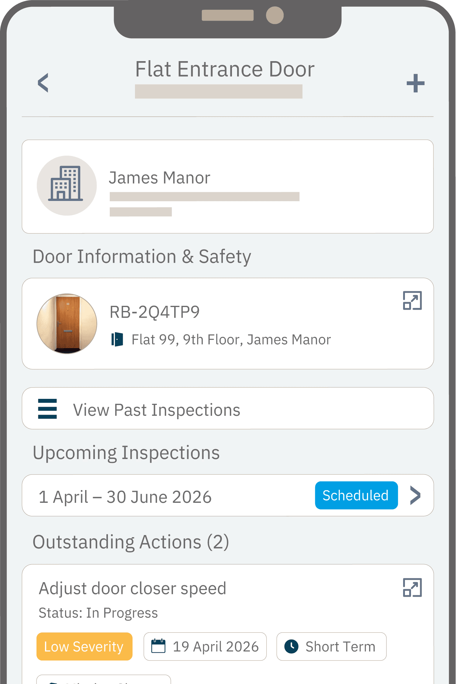 QR codes used on doors and fire safety equipment to speed up regular checks and inspections, can be scanned by residents to access inspection status, outstanding actions and building-wide fire precaution information.